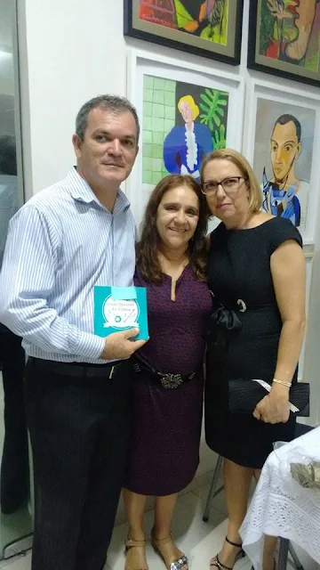Muito agradável a noite de lançamento do livro da Profª Drª Maria Teresa. O livro, prefaciado por mim, é inspirado na famosa obra Dom Quixote de La Mancha, de Cervantes. Nele o leitor é levado a refletir sobre as torres de energia eólica de São Miguel do Gostoso. O artista Rodrigo Bico fez uma belíssima interpretação de um poema, que é parte da obra. Na fotografia aparecemos com a professora Teresa, Rodrigo e nossos amigos pernambucanos Graça e sua filha Mariana Lemos